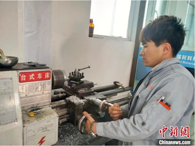 圖為青海廣泰新型金屬材料有限公司的化驗(yàn)員柴發(fā)啟正在進(jìn)行試樣加工。 魯?shù)り?攝